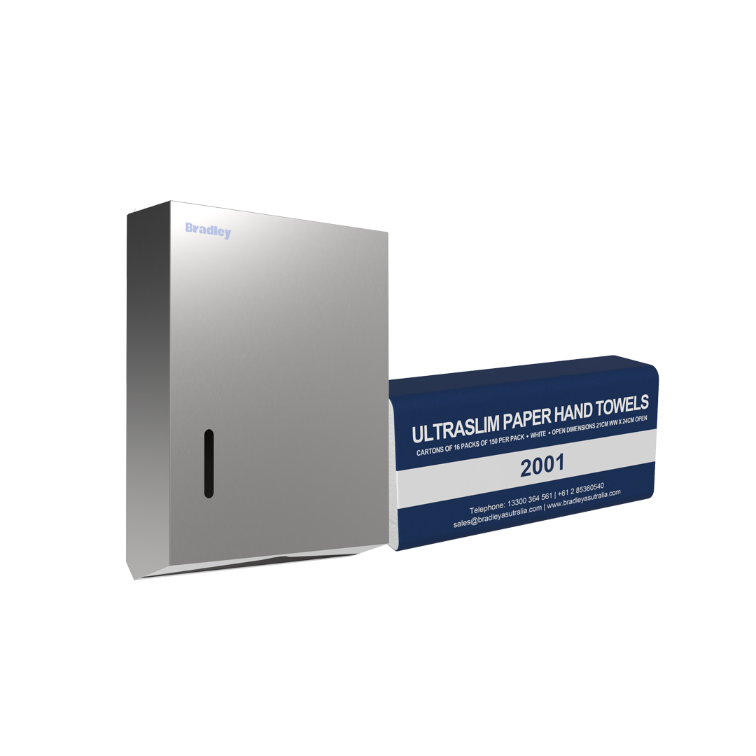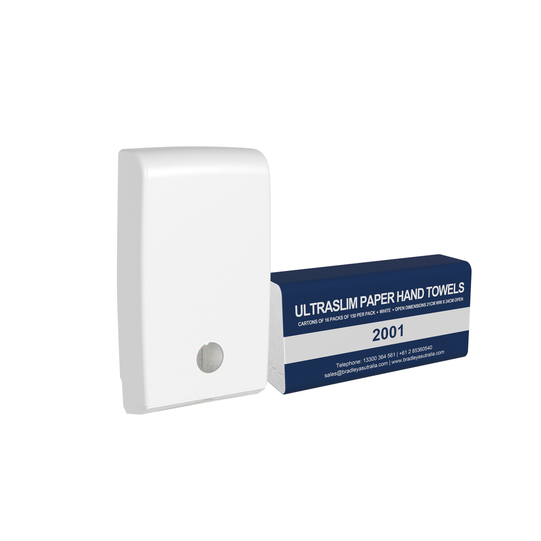 BradleyCare Ultraslim Hand Towel (Model 2001) is a premium paper towel solution designed for high-traffic washrooms, offering superior softness, strength, and absorbency. Interleaved hand towels are both environmentally responsible and highly effective. Ultraslim Hand Towel comes in a carton of 16 packs.